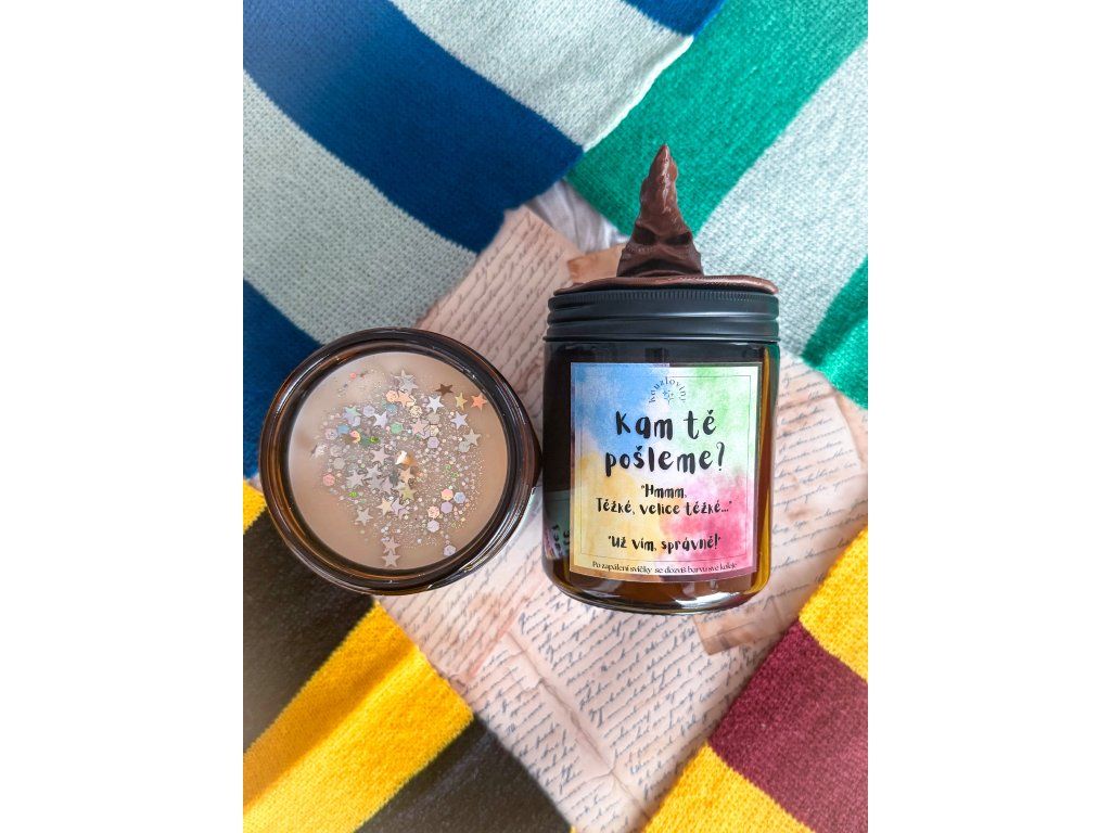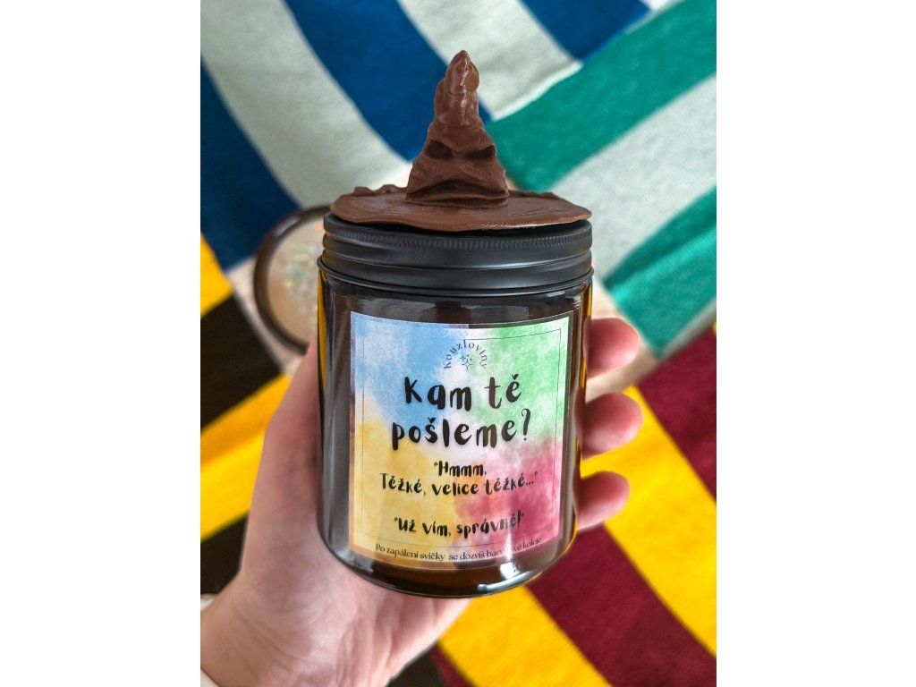 Ručně odlévaná přírodní svíčka. Vůně se liší podle koleje - jahoda, zelené jablko, borůvka, citron. Vůně je středně intenzivní. Doba hoření cca 40 hodin. Na víčku je pevně nalepený 3D tištěný klobouk.